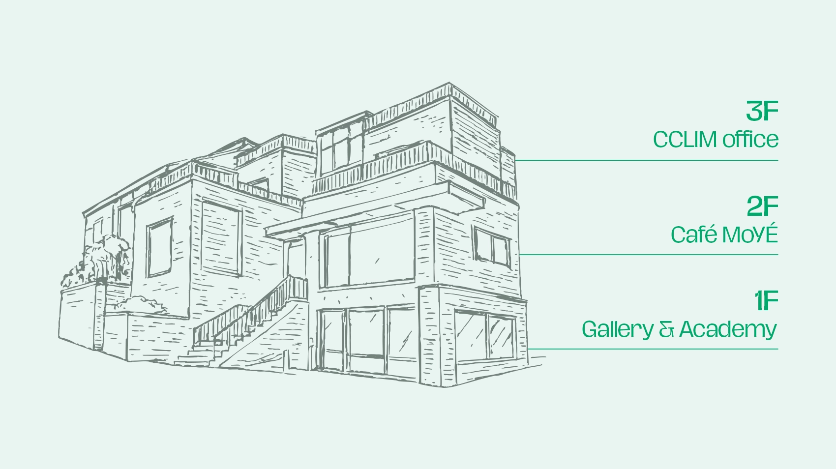 1·2층에서 펼쳐지는 전시, 카페, 공연은 누구나 머무를 수 있는 열린 예술 경험을 만들고,3층에서는 디자인 전문회사 클림(CCLIM) 이 창작의 흐름을 이어갑니다.